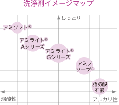 アミソフト®はアミノ酸系弱酸性界面活性剤のパイオニアとして長い間みなさまにご愛顧いただいています。アミソフト®はアミノ酸の一種であるL-グルタミン酸と天然脂肪酸からつくられたアミノ酸系アニオン界面活性剤です。極めて低刺激性で、マイルド系洗浄料に好適。肌と同じ弱酸性で、洗った後でもつっぱらずしっとりとした感触を付与します。アミソフト®は、カリウム塩、ナトリウム塩などの各種塩類や、未中和品(酸タイプ)、また、アシル鎖長の違いにより多くの品種があります。固形石鹸や、洗顔フォーム、液体洗浄料等、さまざまな商品形態に応じて最適な品種をお選びいただけます。